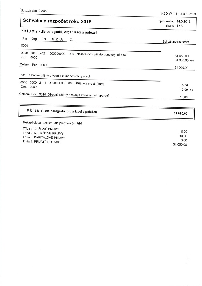 Návrh rozpočtu Svazku obcí Brada na rok 2020
