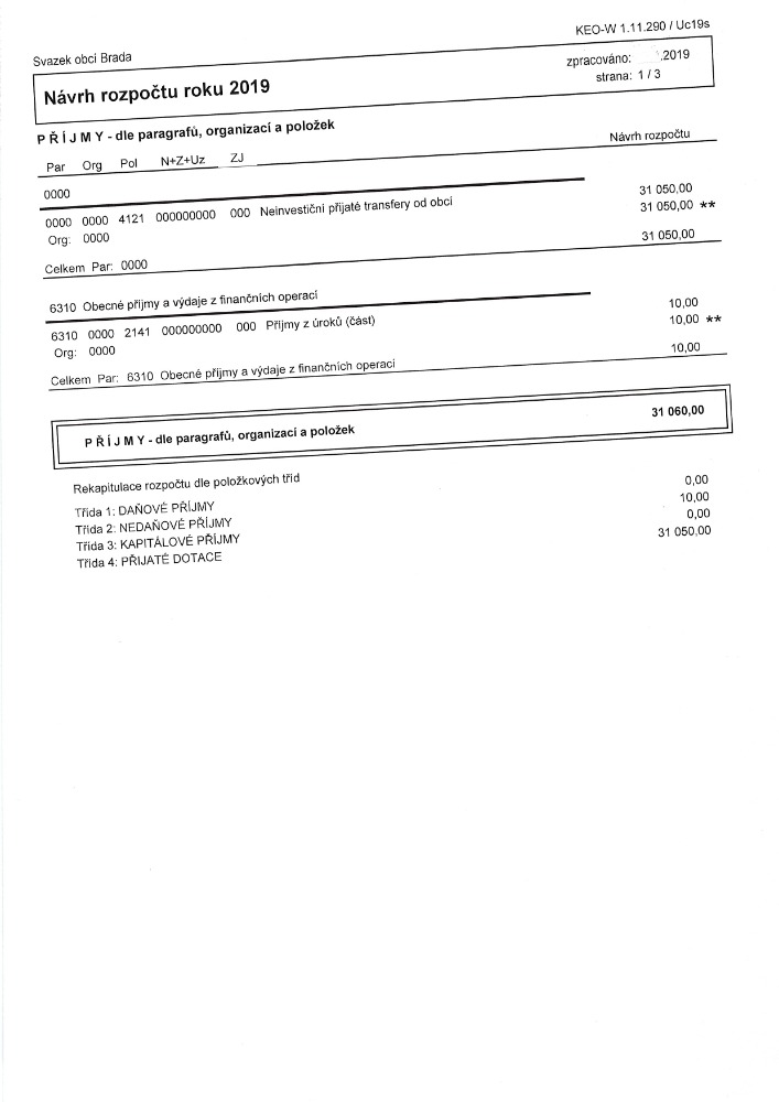 Návrh rozpočtu DSO Brada na rok 2019