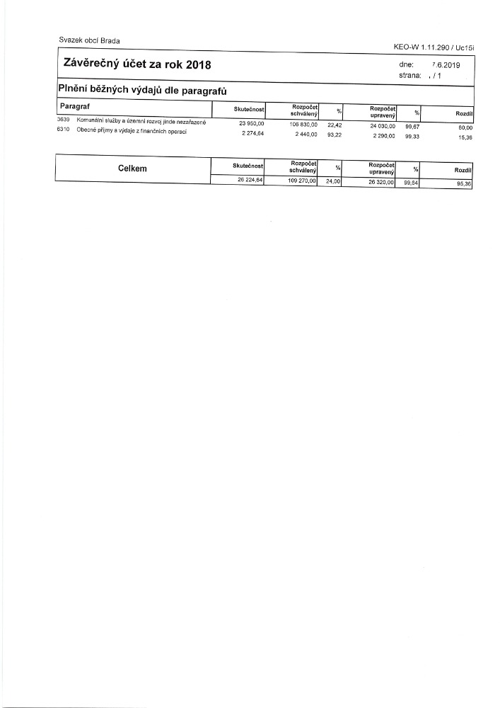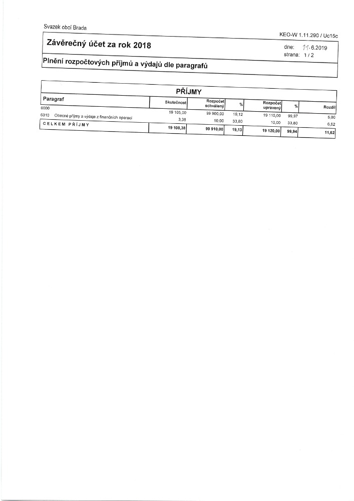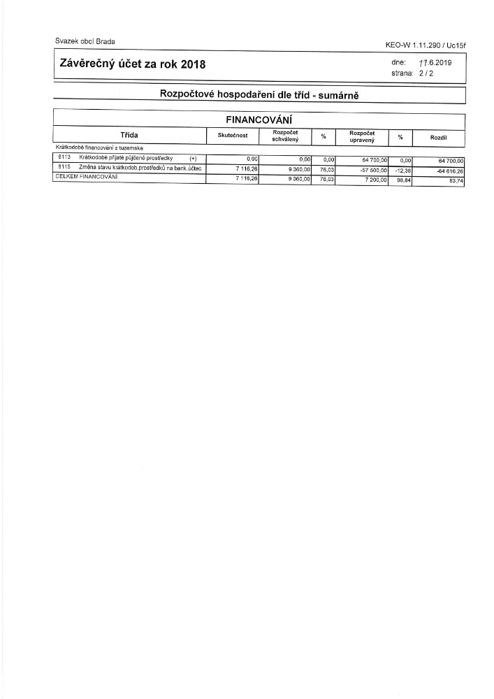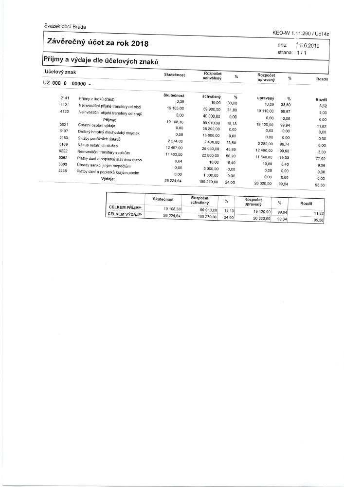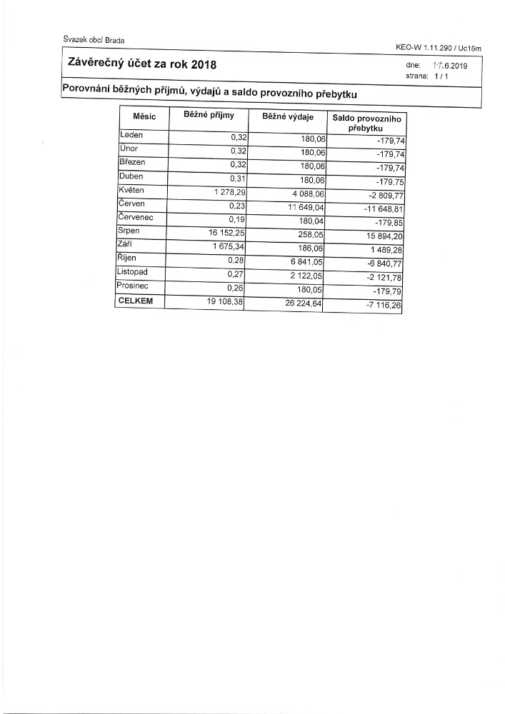 Návrh závěrečného Svazku obcí Brada účtu 2019