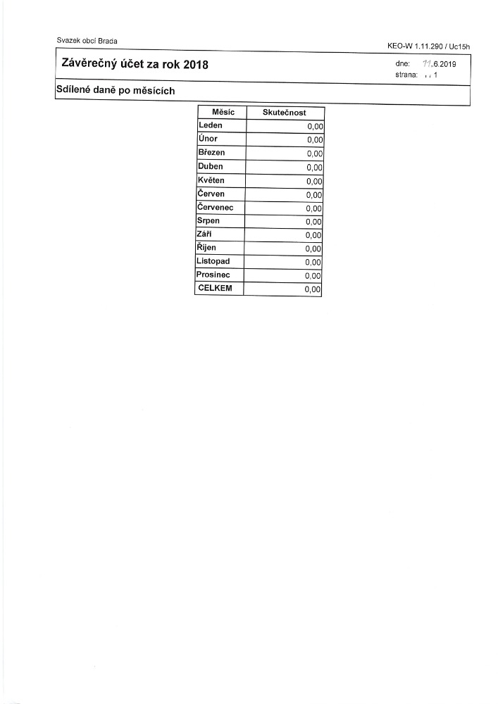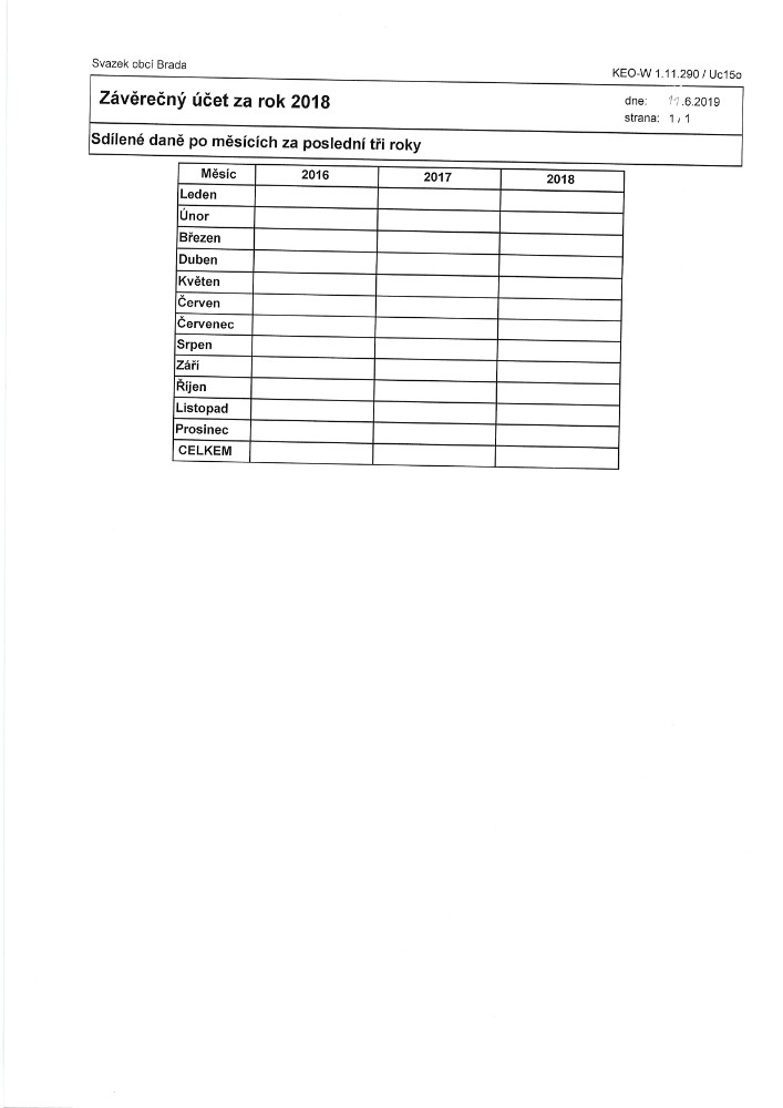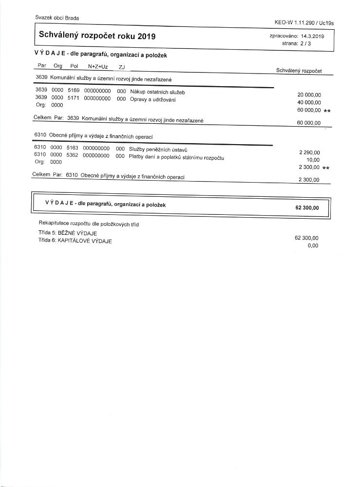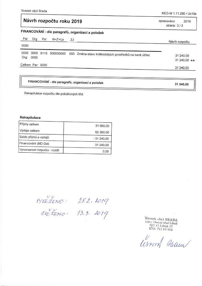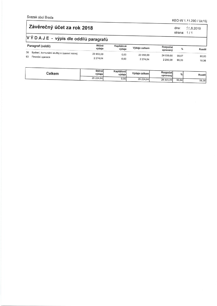 Návrh závěrečného Svazku obcí Brada účtu 2019