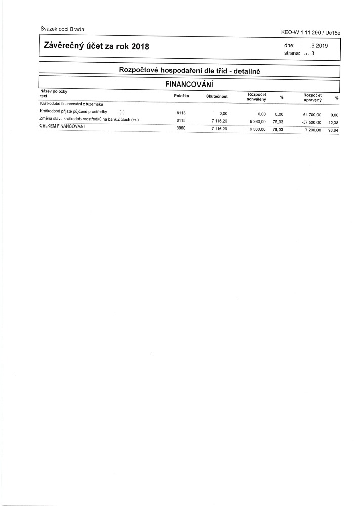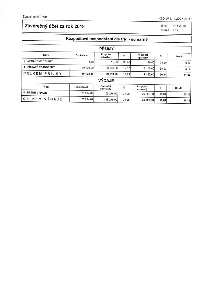 Závěrečný účet SO Brada